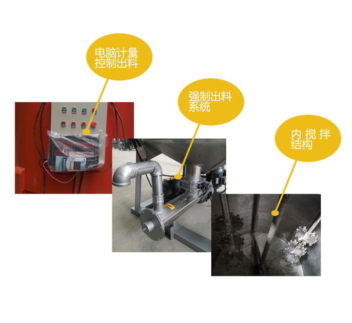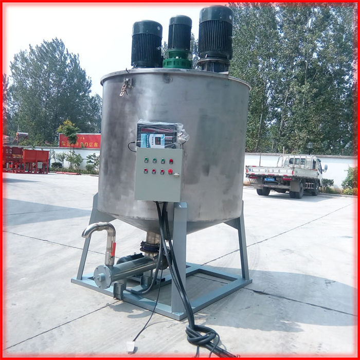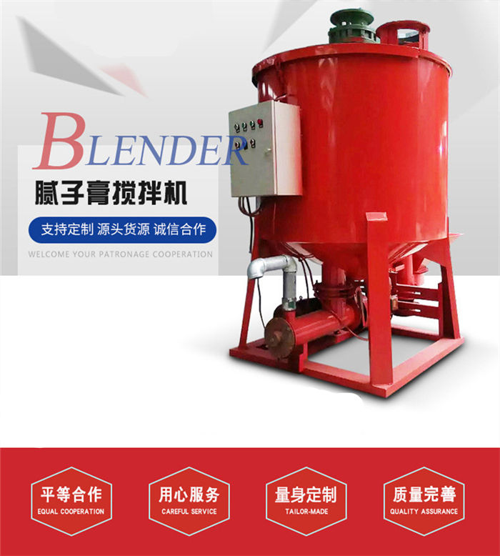立式膩子膏攪拌機內有高速分散盤,采用高速分散低速攪拌的原理,使物料攪拌較快較均勻,電動出料,輕輕一踩腳踏開關即可放出攪拌好的物料,內加刮板,攪拌葉片與桶壁間隙小,殘留較少,出料較干凈。干粉原材料由螺旋上料機上料,液體可以由水泵上料,使用方便,大大降低了勞動強度,提升了生產效率??筛鶕煌锪系膶嶋H需求定制碳鋼及不銹鋼材料。
