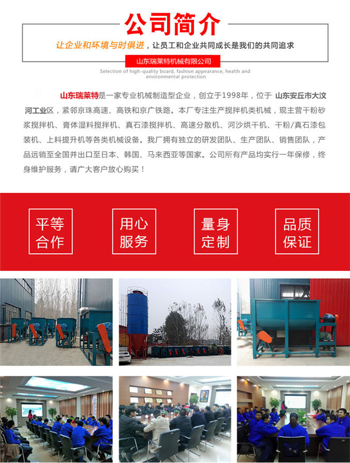 山東瑞萊特機械有限公司 版權所有 魯ICP備17037535號-1 主營產品:預混砂漿生產線,干混砂漿生產線,全自動干粉砂漿包裝機
